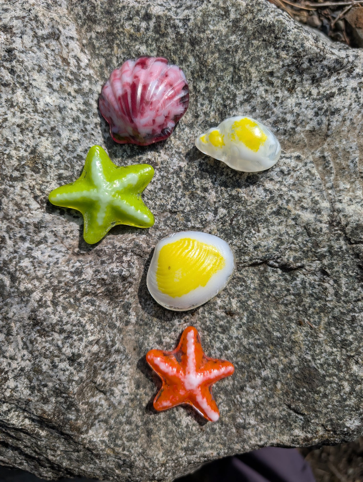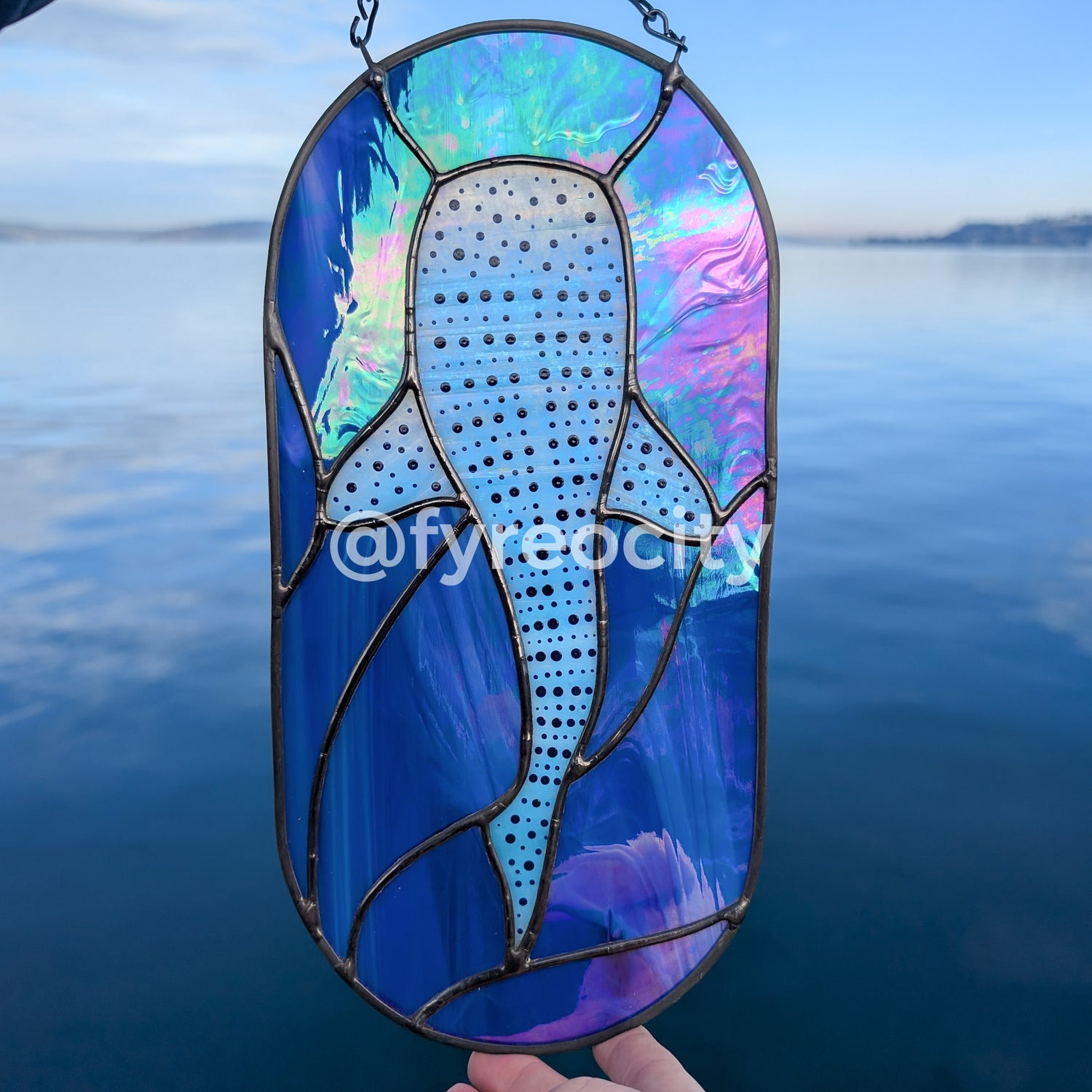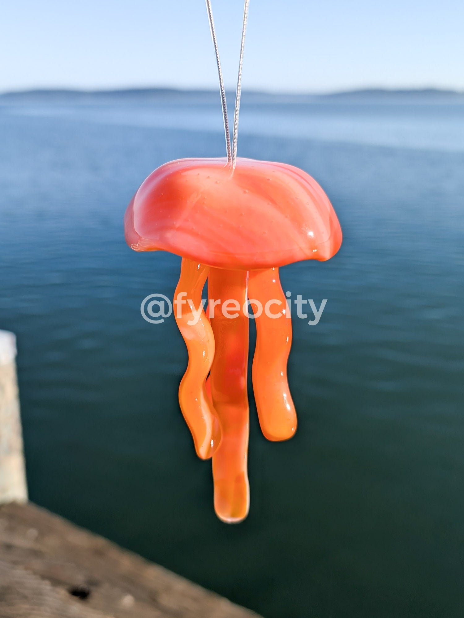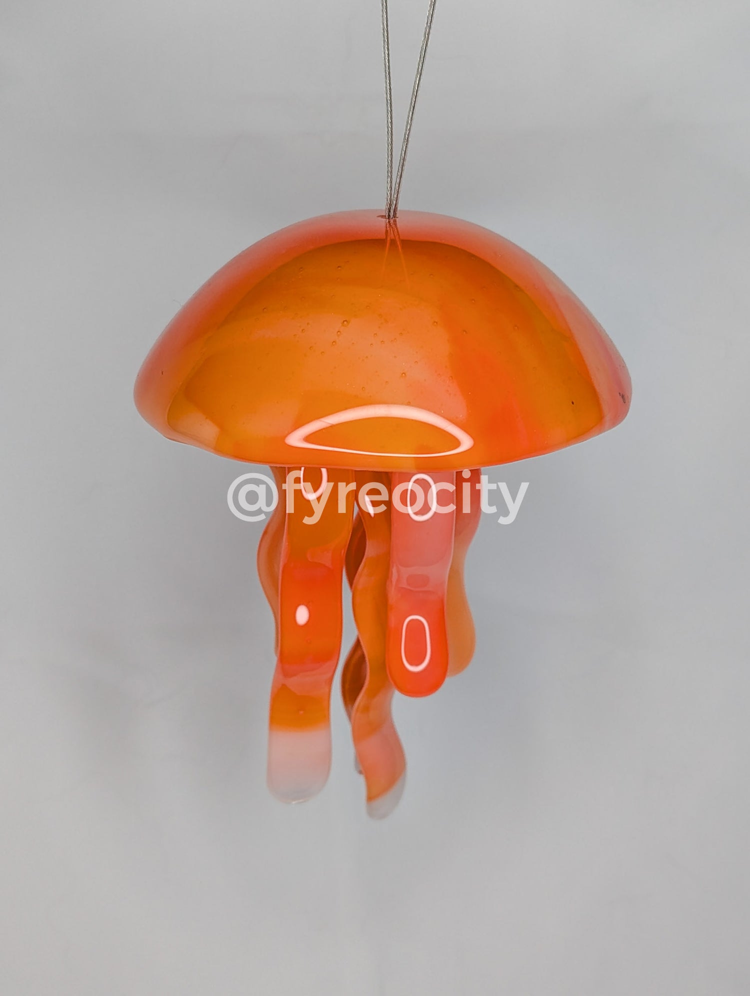 Kiln-formed jellyfish wind chimes are made by fusing two layers of glass...