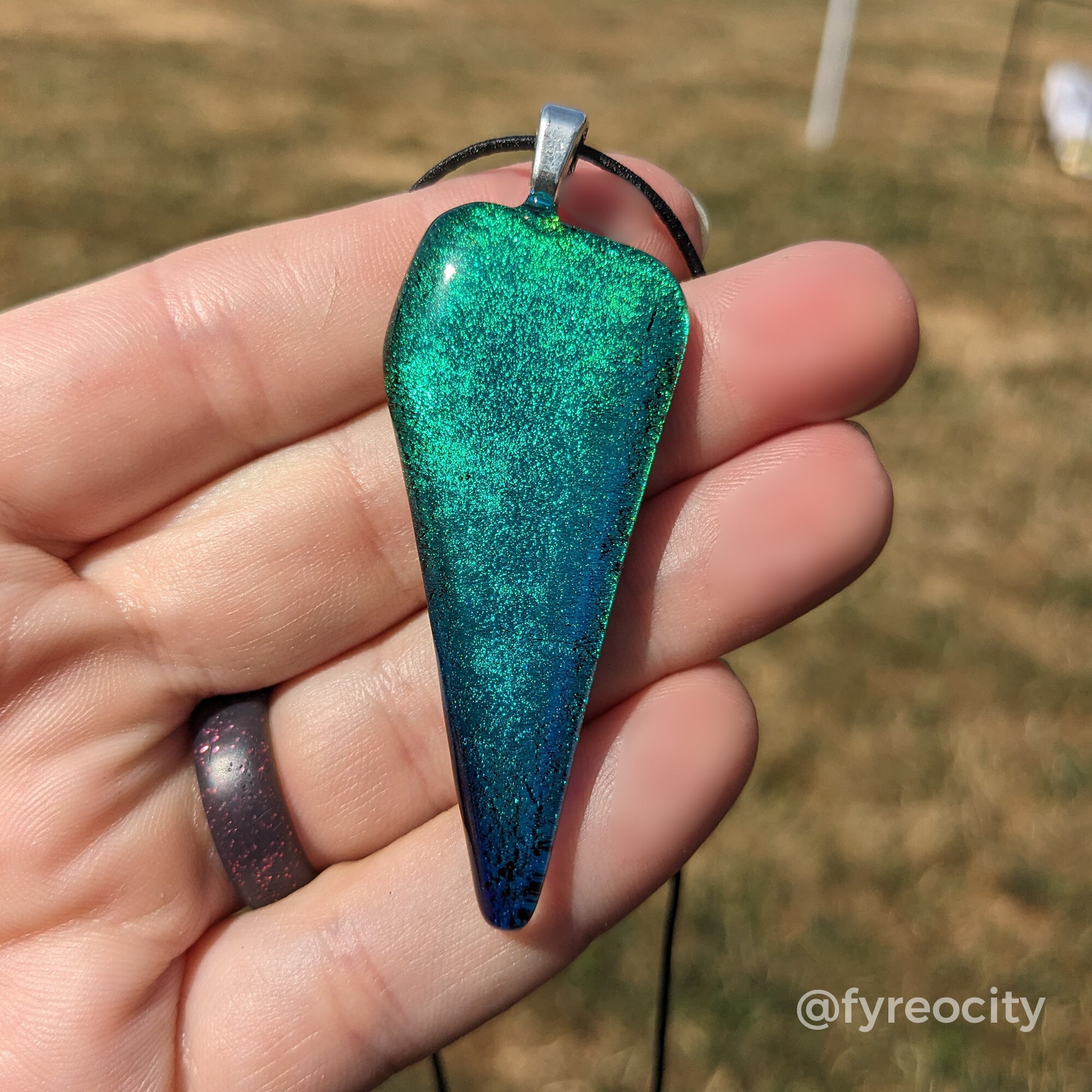 Wearable fused glass art. Stretch cord included.