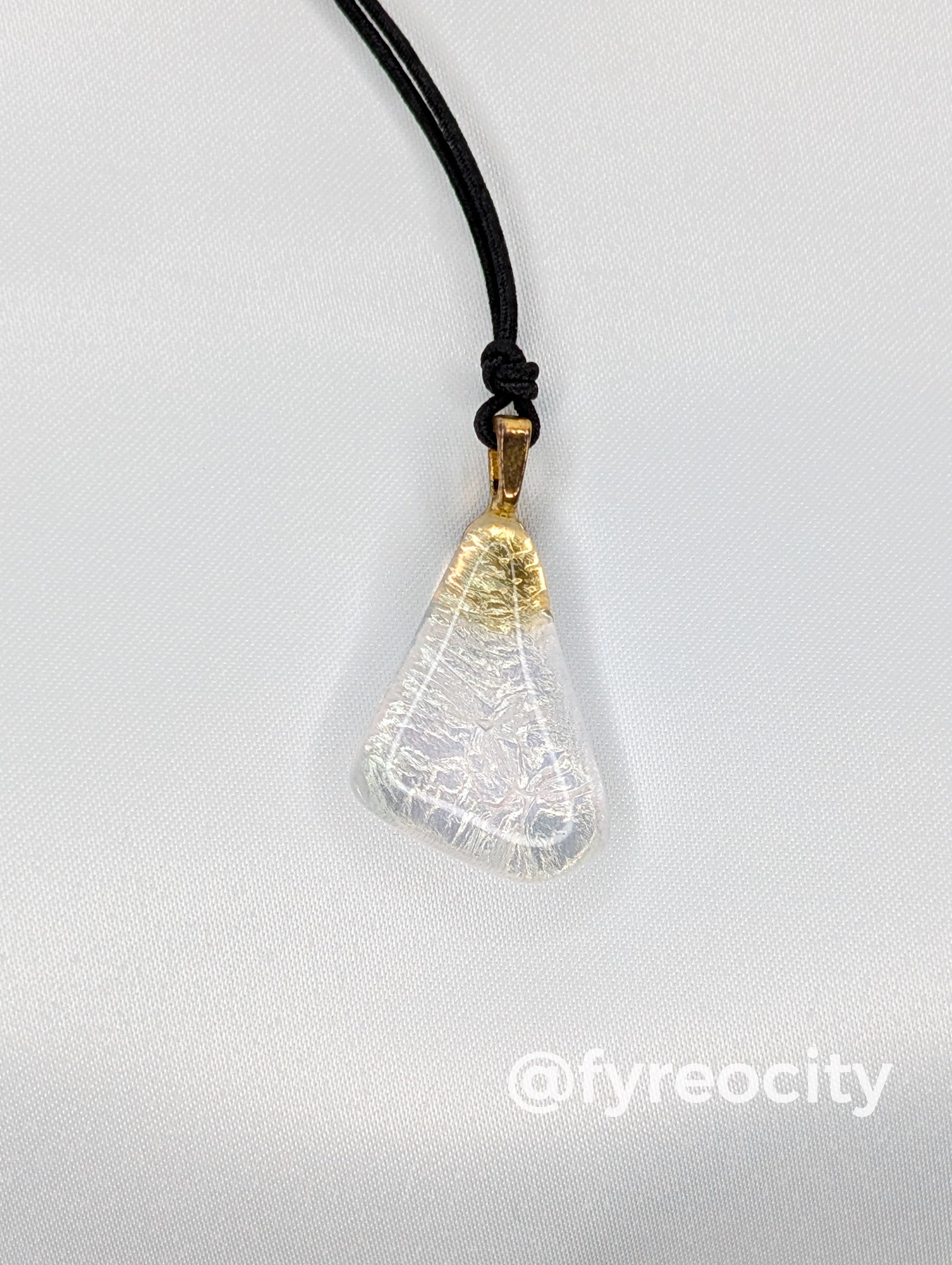 Wearable fused glass art. Stretch cord included.